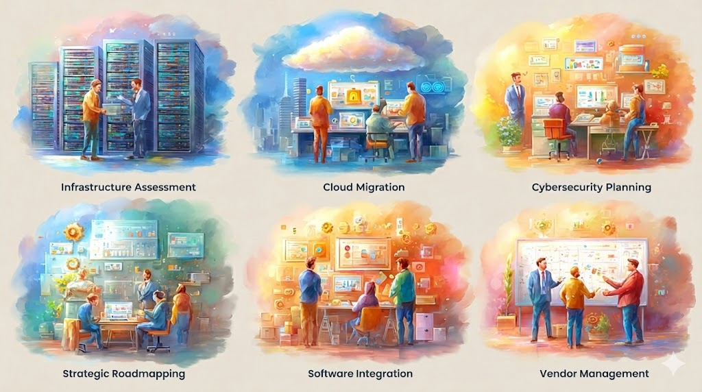 Many small businesses hesitate to engage consultants due to perceived costs. However, the benefits of small business IT consulting services often include significant cost savings through strategic vendor negotiations, preventing expensive mistakes, and right-sizing technology investments.